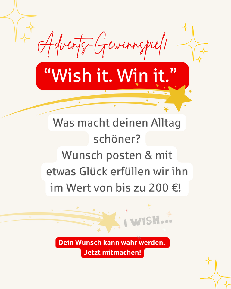 So machst du mit: 1️⃣ Folge unserem Account 2️⃣ Like den Beitrag 3️⃣ Nenne deinen Wunsch mit #WishItWinIt